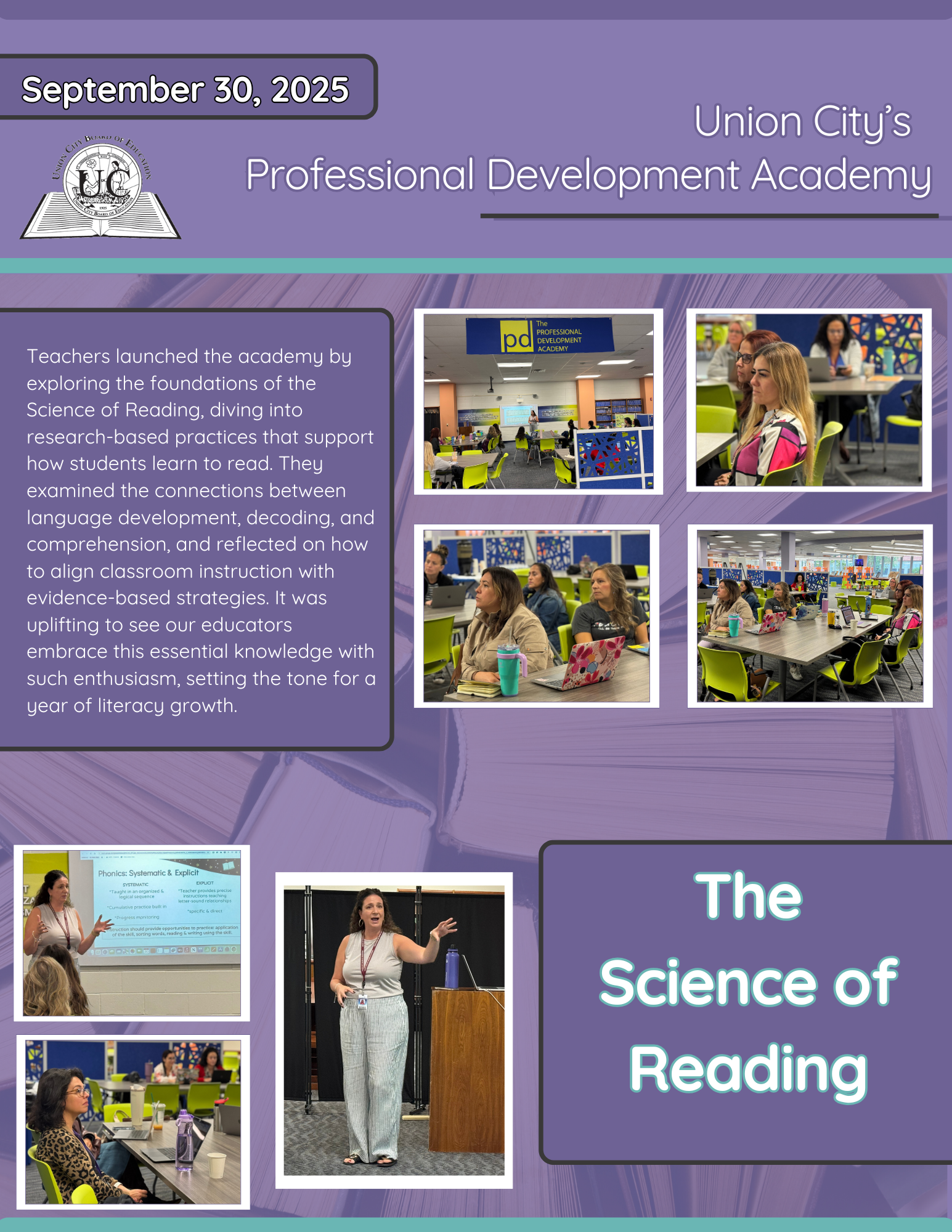 La Academia de Desarrollo Profesional del Distrito organizó el taller: La ciencia de la lectura. Los profesores inauguraron la academia explorando los fundamentos de la ciencia de la lectura, profundizando en prácticas basadas en la investigación que apoyan el aprendizaje de la lectura por parte de los alumnos.